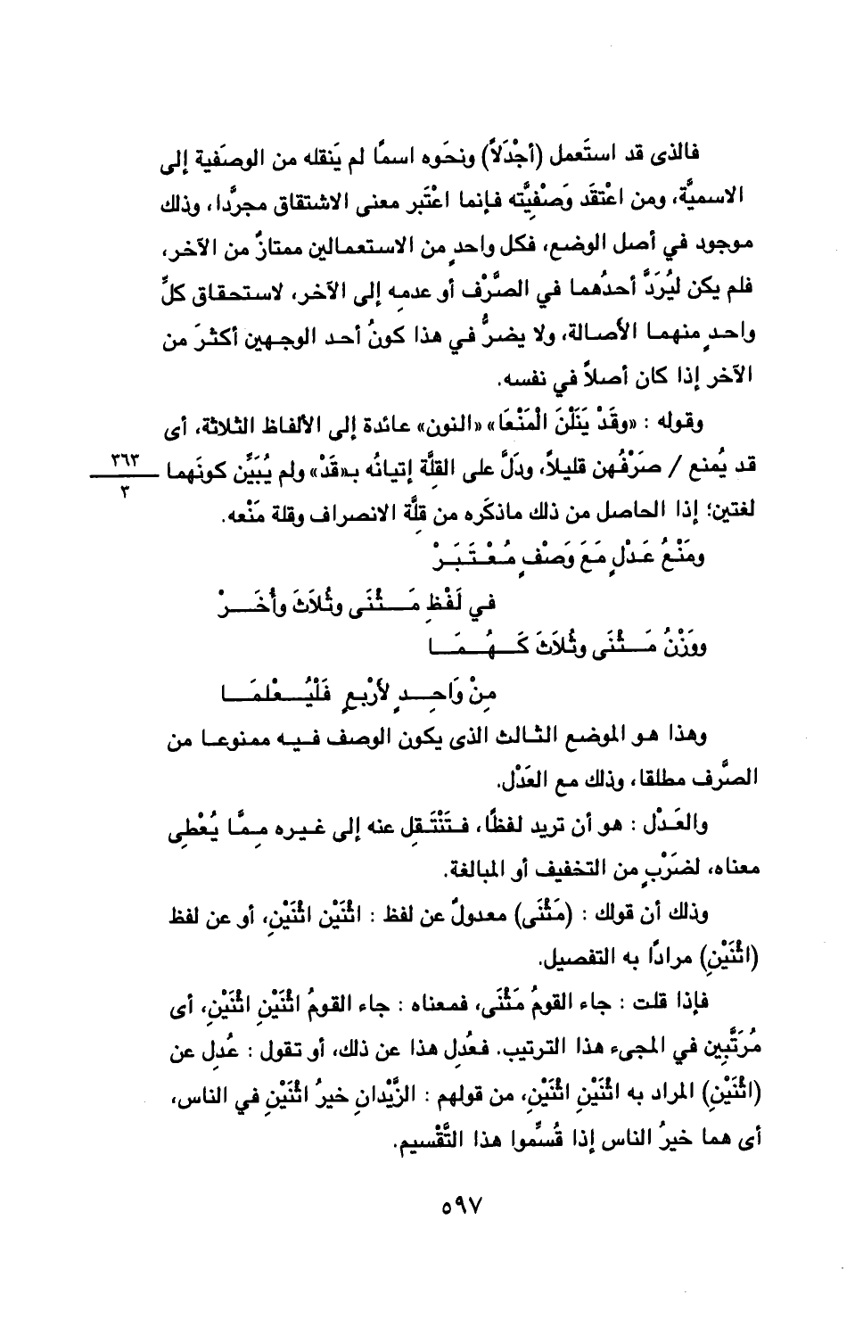 ومنع عدل مع وصف معتبر ... في لفظ مثنى وثلاث وأخر