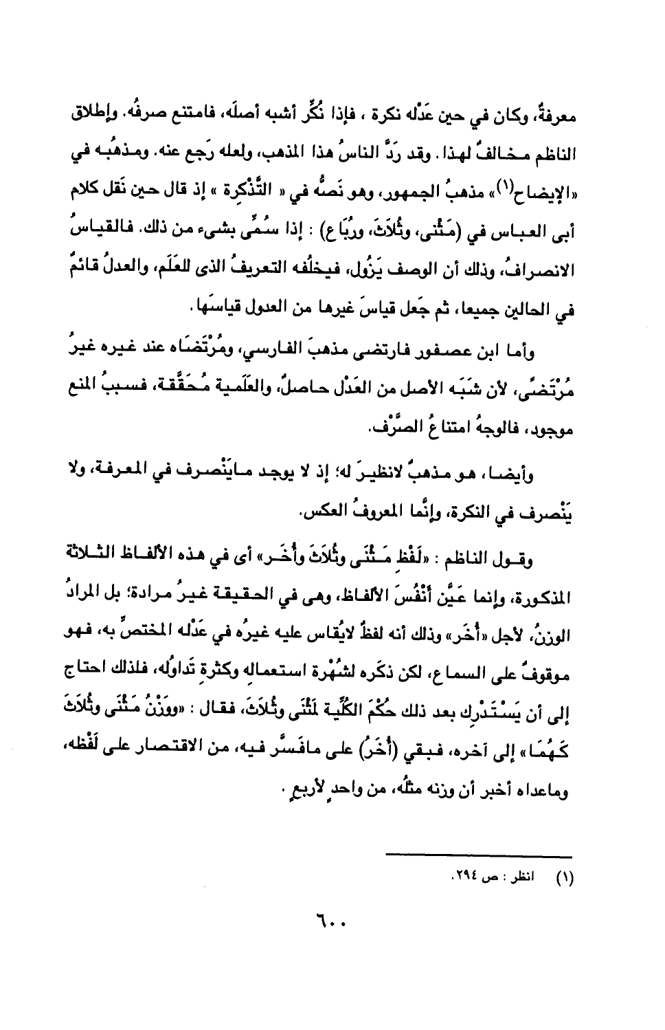 وأيضا، هو مذهب لا نظير له؛ إذ لا يوجد ما ينصرف في المعرفة، ولا ينصرف في النكرة، وإنما المعروف العكس.
