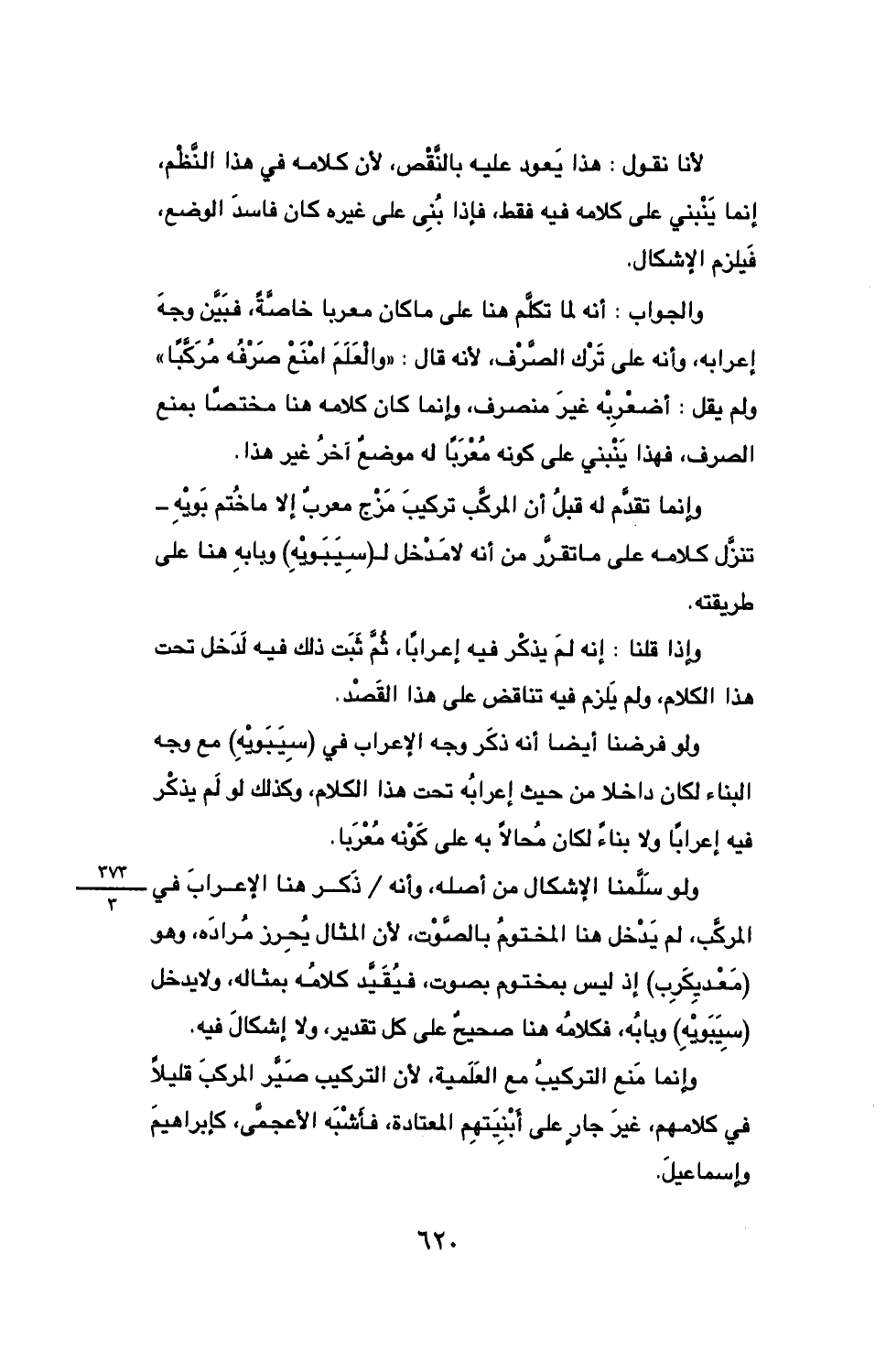 ولو فرضنا أيضا أنه ذكر وجه الإعراب في (سيبويه) مع وجه البناء لكان داخلا من حيث إعرابه تحت هذا الكلام، وكذلك لو لم يذكر فيه إعرابًا ولا بناءً لكان محالًا به على كونه معربا.