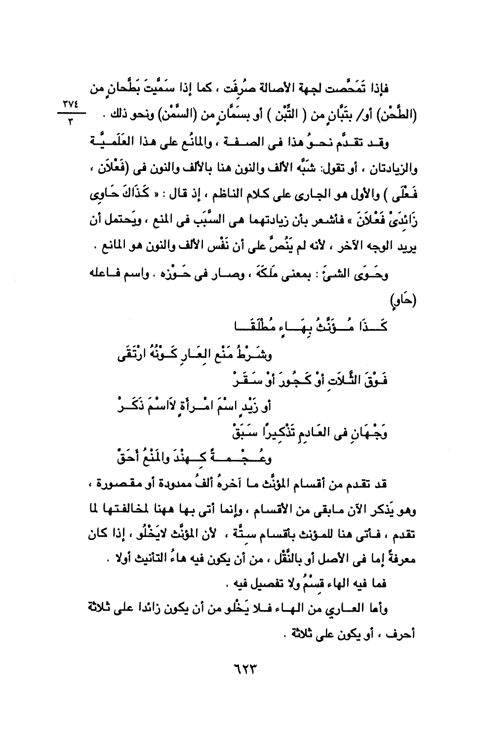 فإذا تمحصت لهجة الأصالة صرفت، كما إذا سميت لطحان من (الطحن) أو بتبانٍ من (التبن) أو بسمان من (السمن) ونحو ذلك.