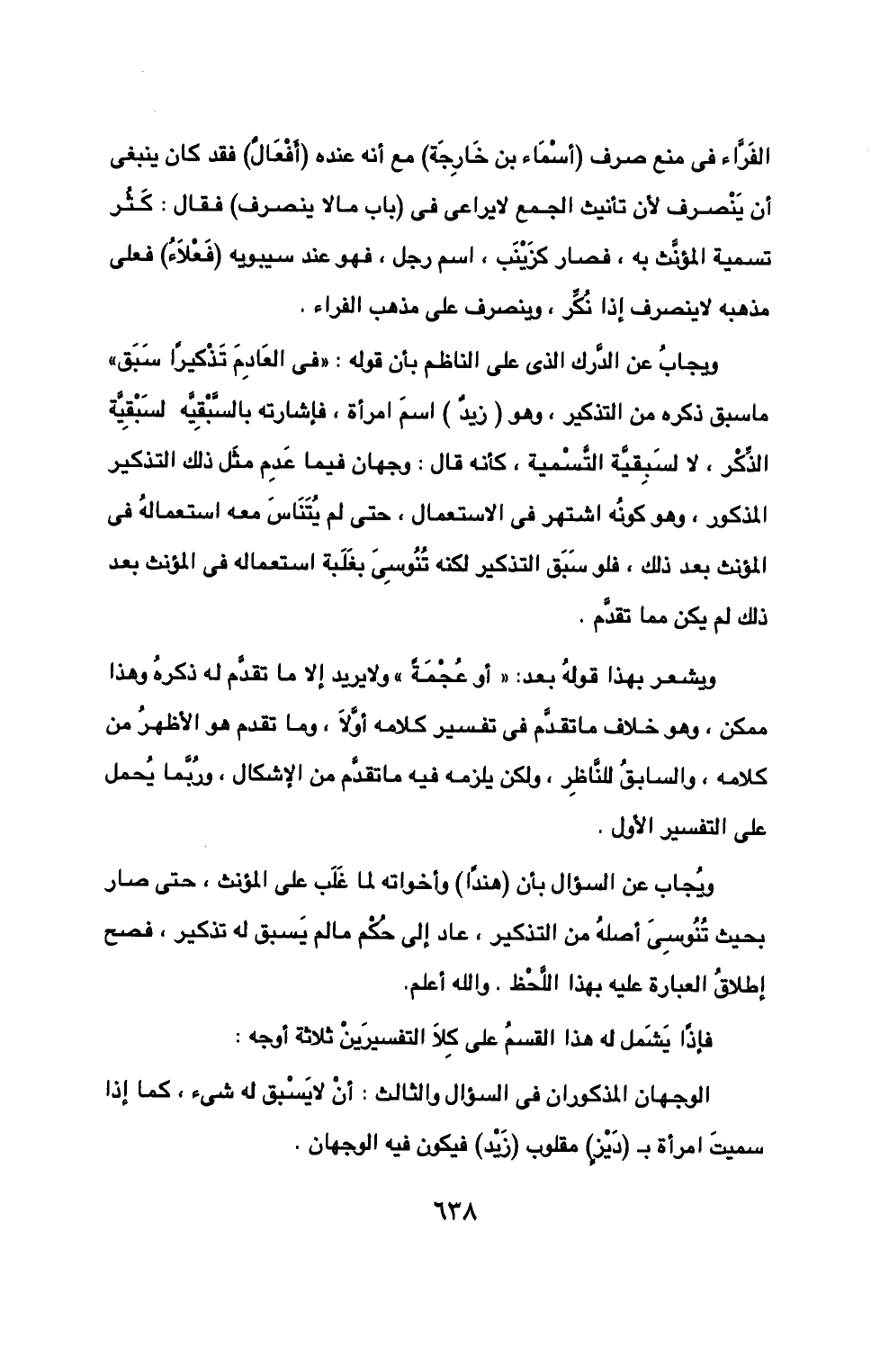 ويجاب عن السؤال بأن (هندًا) وأخواته لما غلب على المؤنث، حتى صار بحيث تنوسي أصله من التذكير، عاد إلى حكم ما لم يسبق له تذكير، فصح إطلاق العبارة عليه بهذا اللحظ. والله أعلم.