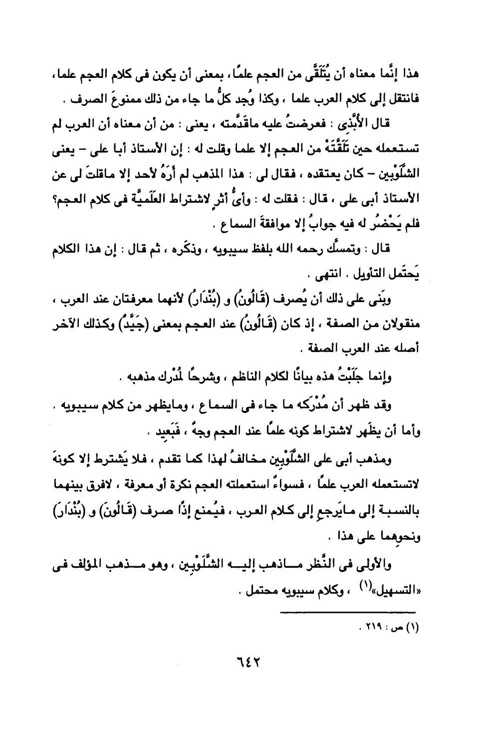 قال: وتمسك رحمه الله بلفظ سيبويه، وذكره، ثم قال: إن هذا الكلام يحتمل التأويل. انتهى.