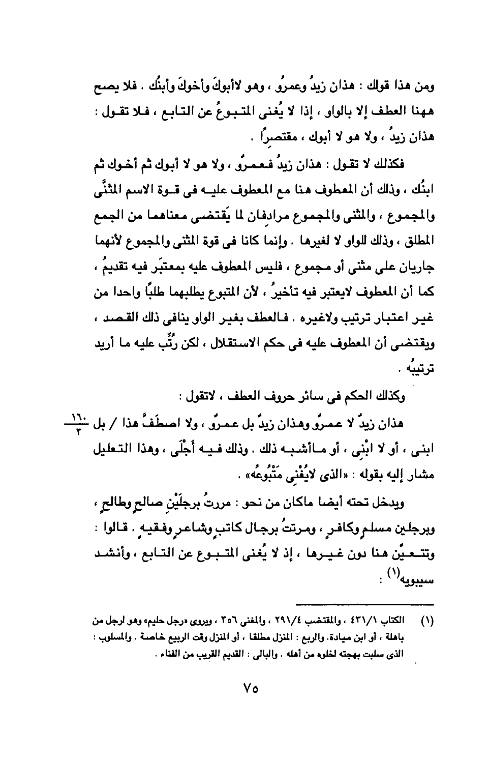 ويدخل تحته أيضًا ما كان من نحو: مررت برجلين صالح وطالح، وبرجلين مسلم وكافر، ومررت برجال كاتب وشاعر وفقيه. قالوا: وتتعين هنا دون غيرها، إذ لا يغني المتبوع عن التابع، وأنشد سيبويه: