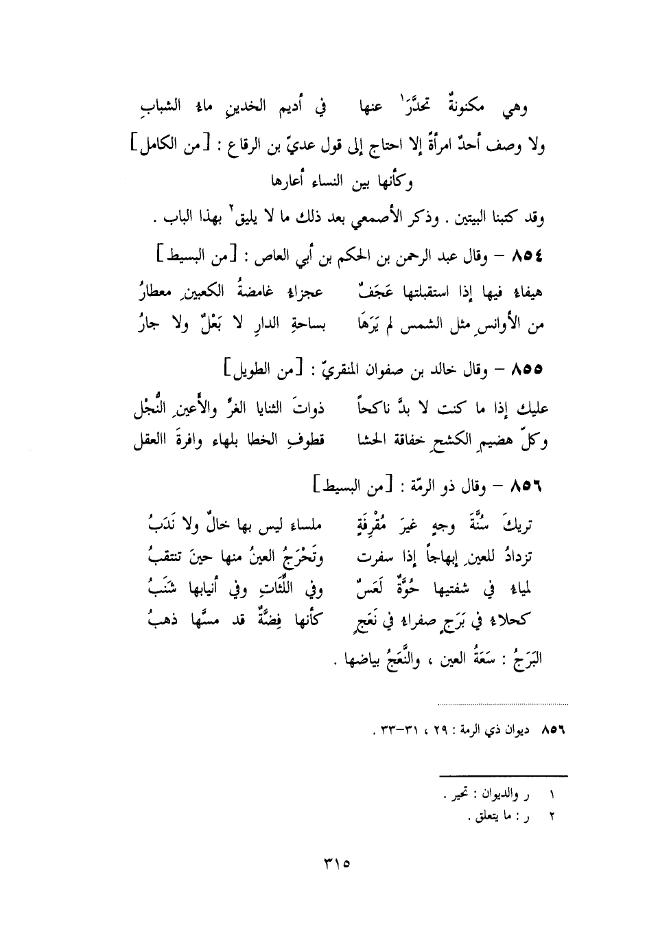 ولا وصف أحد امرأة إلا احتاج إلى قول عديّ بن الرقاع: [من الكامل]