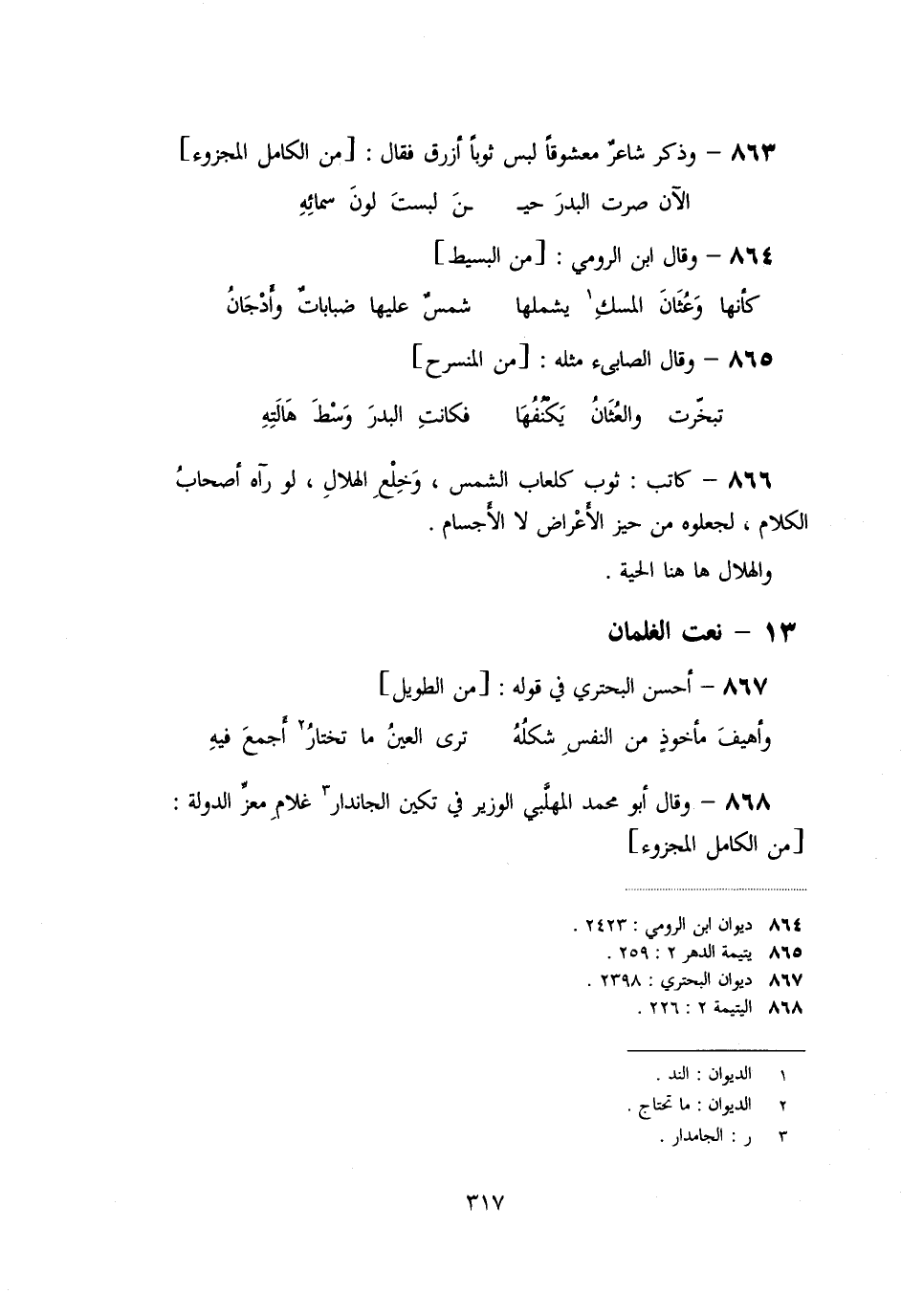 «868» - وقال أبو محمد المهلّبي الوزير في تكين الجاندار [3] غلام معزّ الدولة: