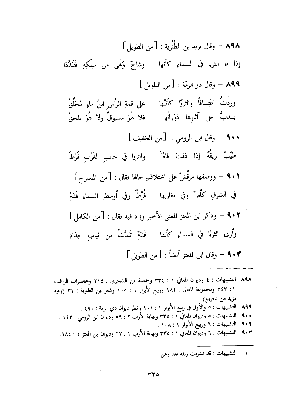 «902» - وذكر ابن المعتز المعنى الأخير وزاد فيه فقال: [من الكامل]