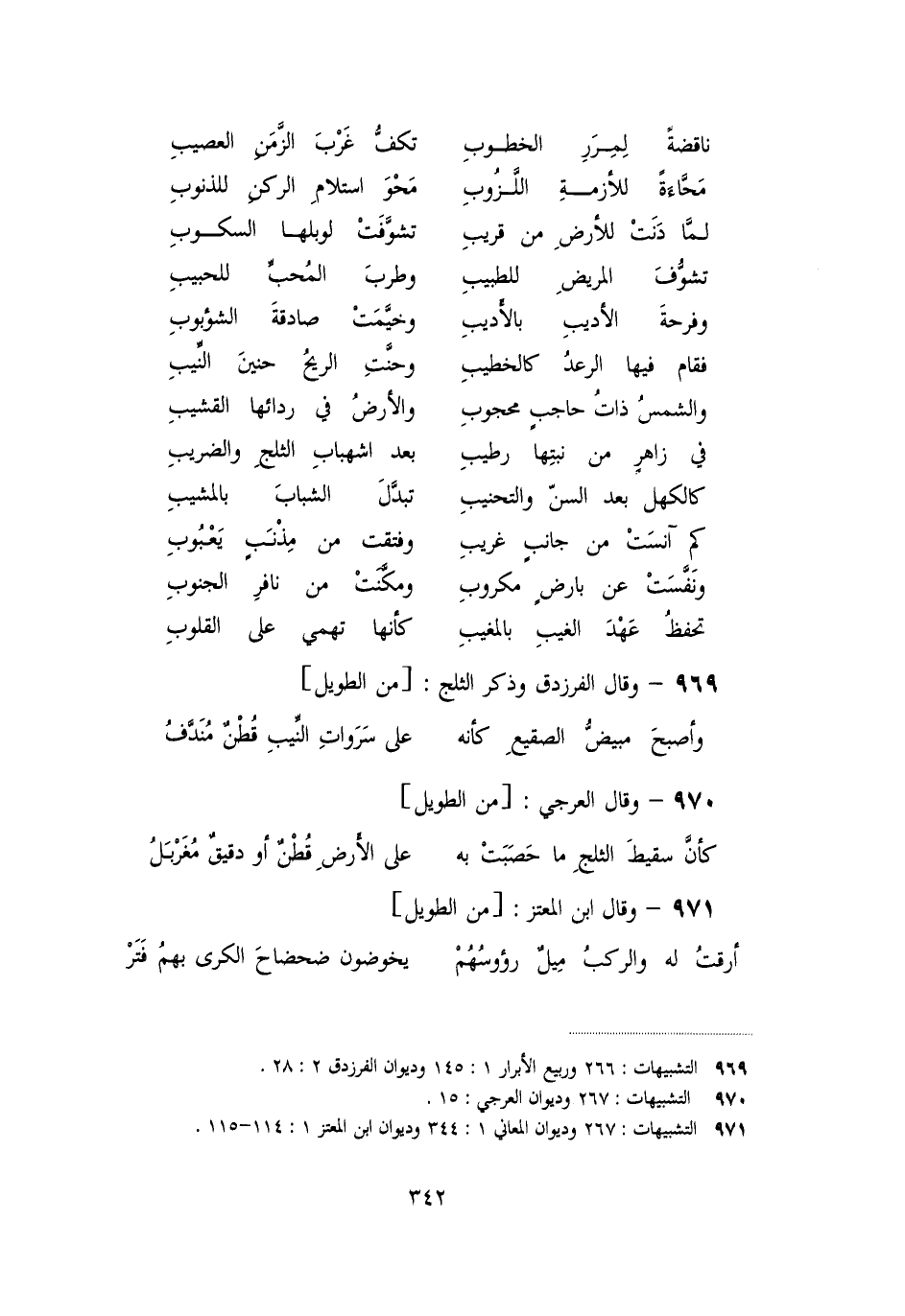 «969» - وقال الفرزدق وذكر الثلج: [من الطويل]