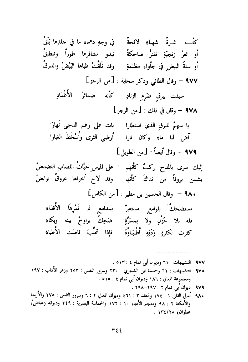 «980» - وقال الحسين بن مطير: [من الكامل]