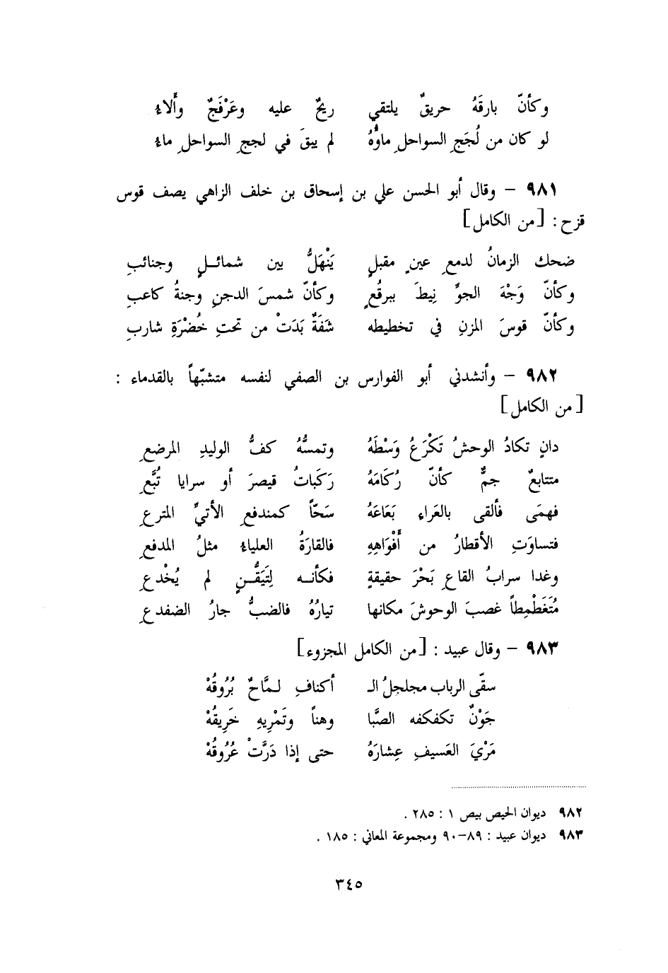 «982» - وأنشدني أبو الفوارس بن الصفي لنفسه متشبّها بالقدماء:
