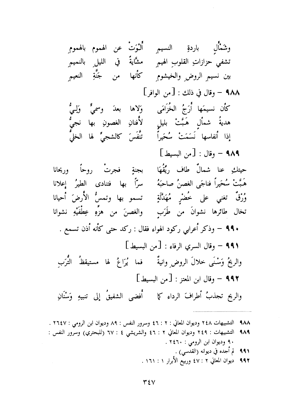 هبّت سحيرا فناجى الغصن صاحبه ... سرّا بها فتنادى الطير إعلانا
