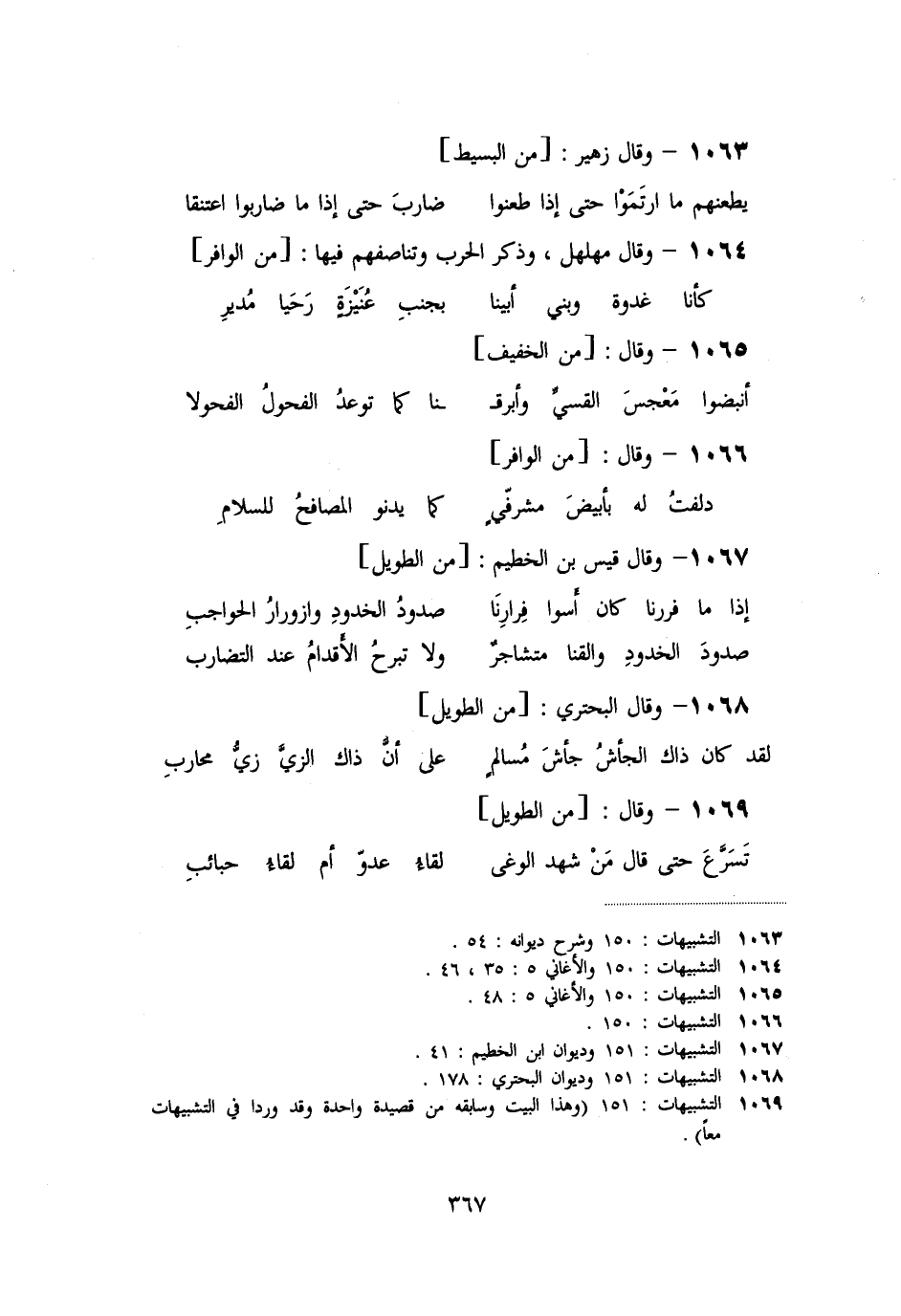 «1067» - وقال قيس بن الخطيم: [من الطويل]