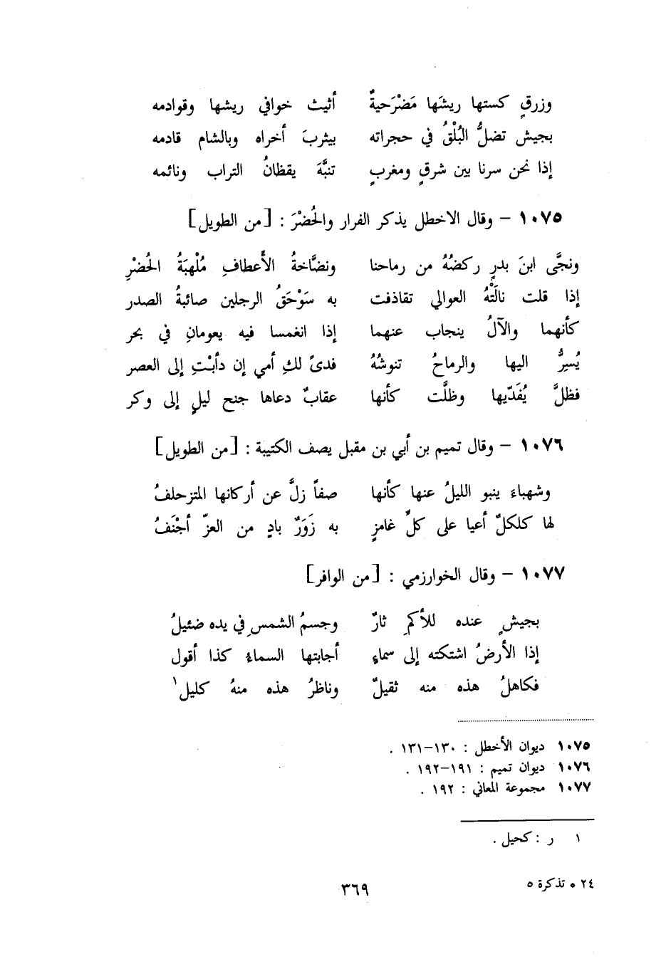 «1075» - وقال الاخطل يذكر الفرار والحضر: [من الطويل]