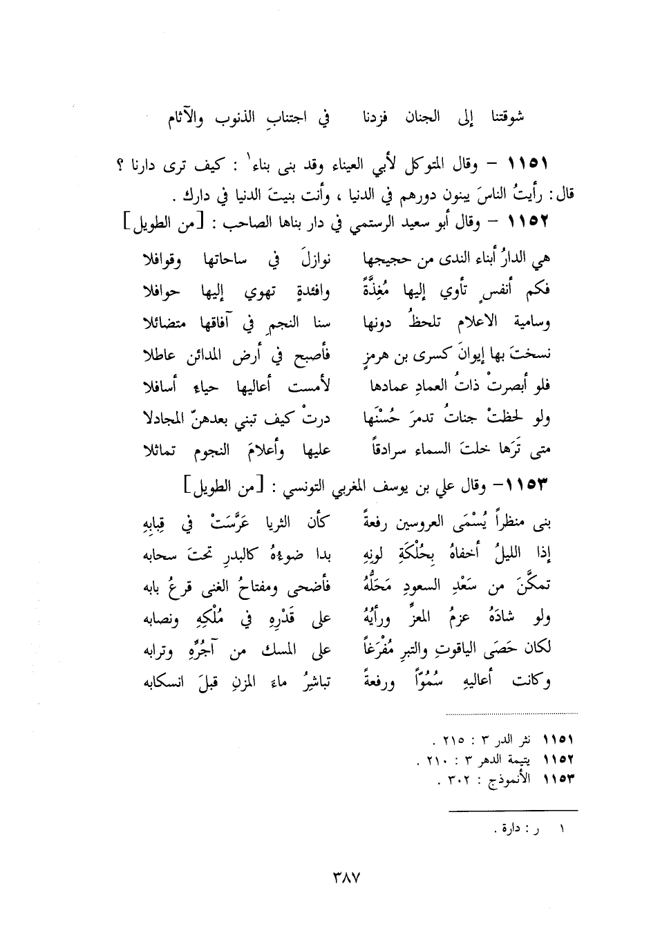 «1152» - وقال أبو سعيد الرستمي في دار بناها الصاحب: [من الطويل]