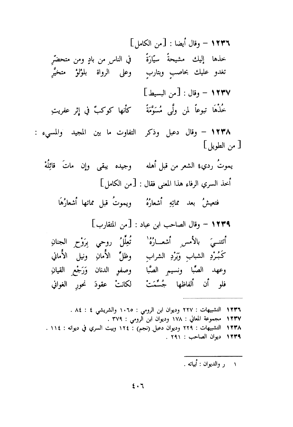 «1239» - وقال الصاحب ابن عباد: [من المتقارب]