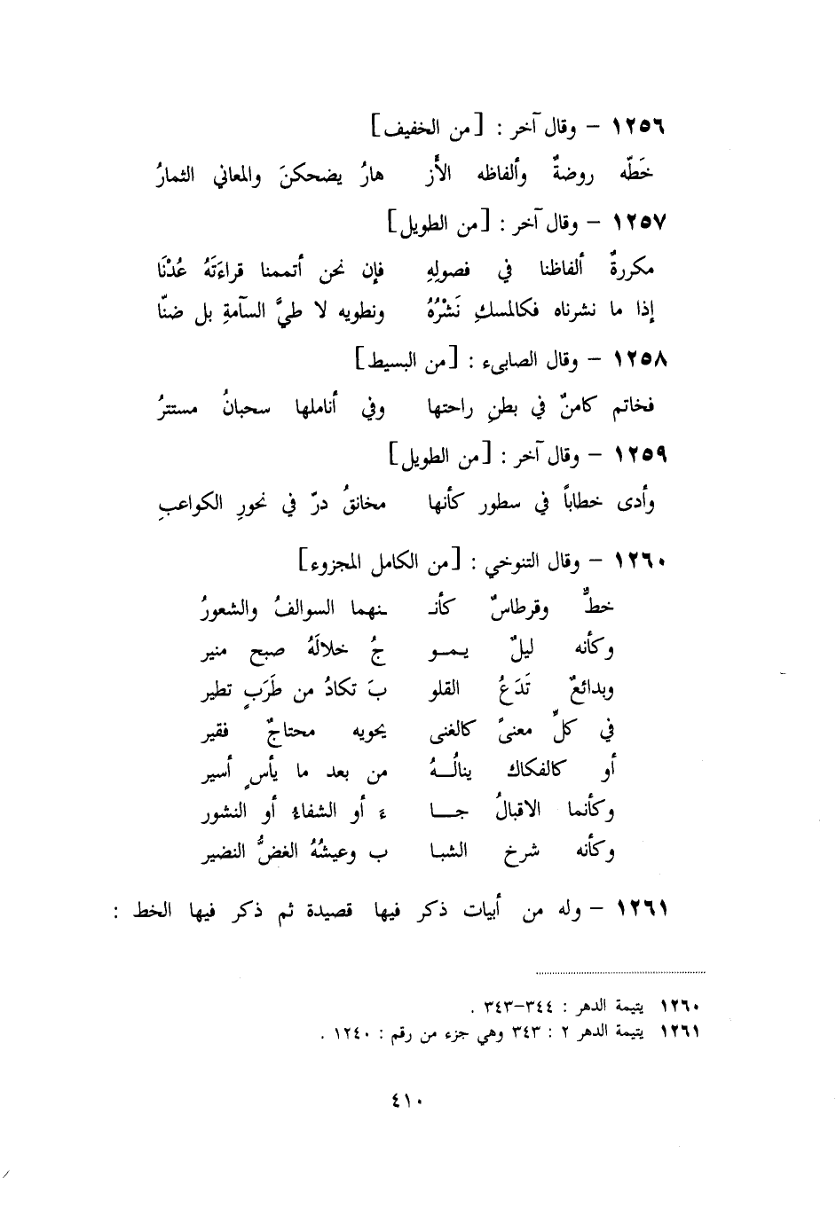 «1261» - وله من أبيات ذكر فيها قصيدة ثم ذكر فيها الخط: