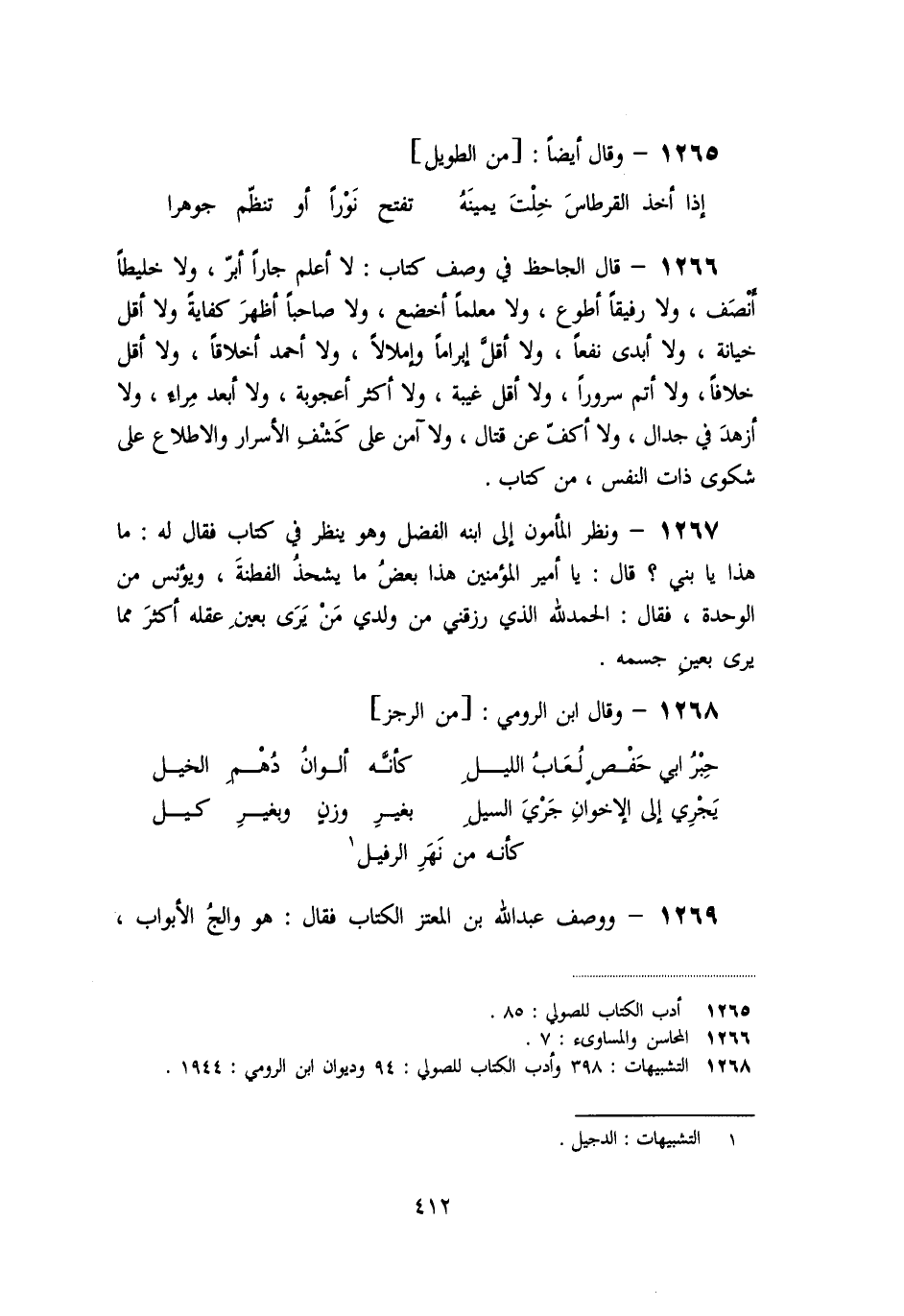 1269- ووصف عبد الله بن المعتز الكتاب فقال: هو والج الأبواب،