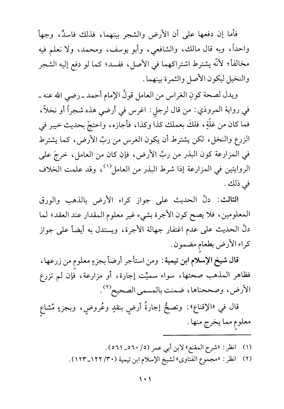 قال في "الإقناع": وتصحُّ إجارةُ أرضٍ بنقدٍ وعُروضٍ، وبجزءٍ مُشاعٍ معلومٍ مما يخرج منها.