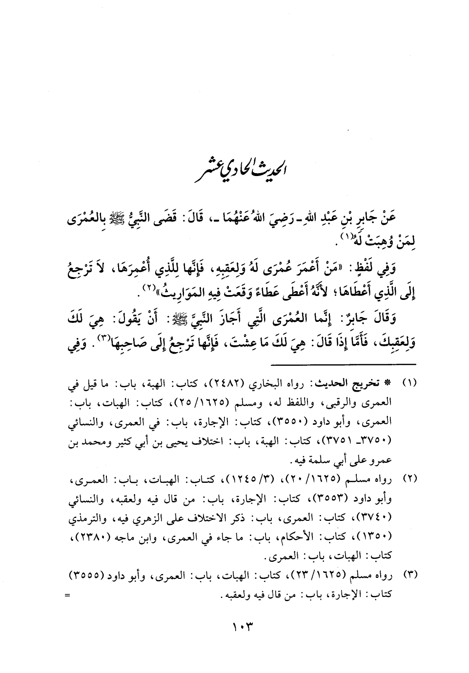 (٣) رواه مسلم (١٦٢٥/ ٢٣)، كتاب: الهبات، باب: العمرى، وأبو داود (٣٥٥٥) كتاب: الإجارة، باب: من قال فيه ولعقبه. =
