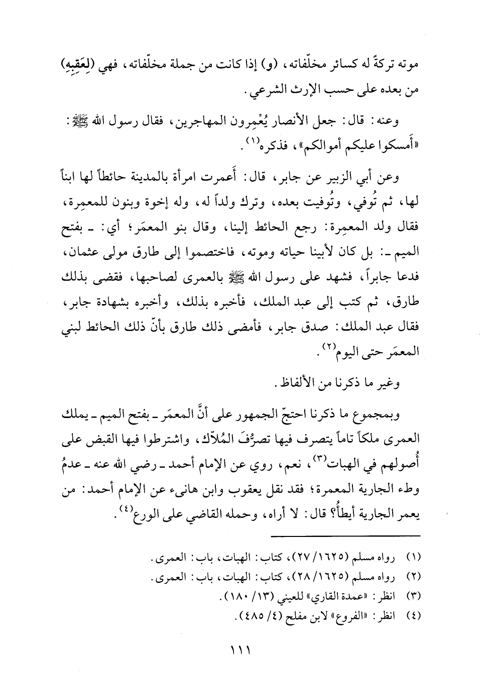 (٢) رواه مسلم (١٦٢٥/ ٢٨)، كتاب: الهبات، باب: العمرى.