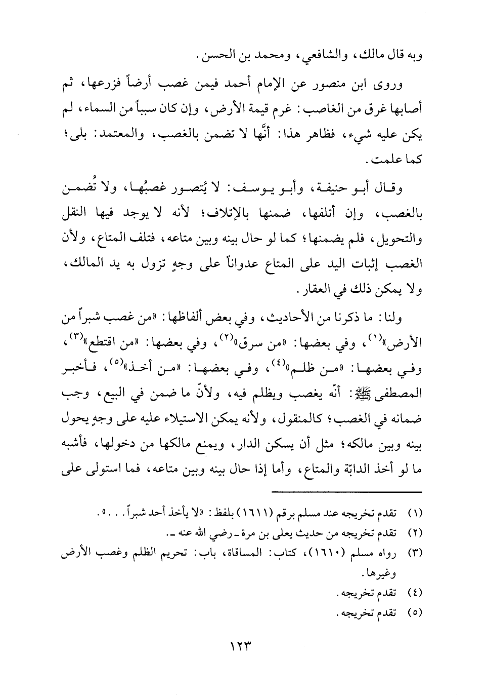 (٣) رواه مسلم (١٦١٠)، كتاب: المساقاة، باب: تحريم الظلم وغصب الأرض وغيرها.