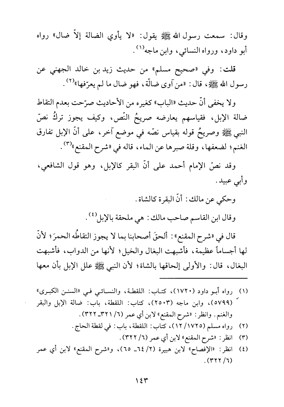 (١) رواه أبو داود (١٧٢٠)، كتاب: اللقطة، والنسائي في "السنن الكبرى" (٥٧٩٩)، وابن ماجة (٢٥٠٣)، كتاب: اللقطة، باب: ضالة الإبل والبقر والغنم. وانظر: "شرح المقنع" لابن أي عمر (٦/ ٣٢١ - ٣٢٢).
