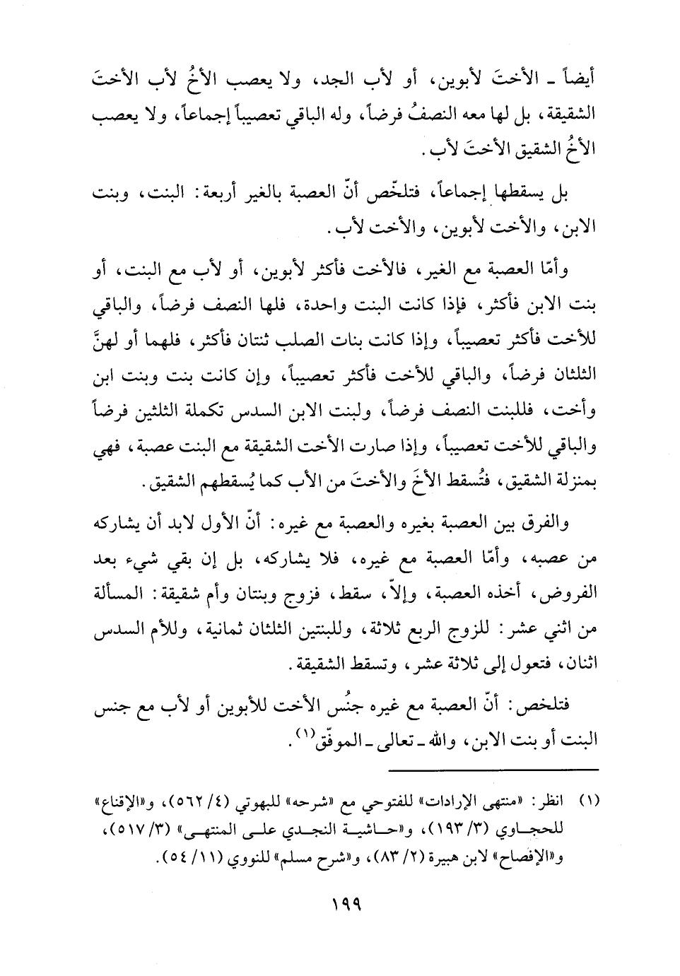 أيضًا- الأختَ لأبوين، أو لأب الجد، ولا يعصب الأخُ لأب الأختَ الشقيقة، بل لها معه النصفُ فرضًا، وله الباقي تعصيبًا إجماعًا، ولا يعصب الأخُ الشقيق الأختَ لأب.