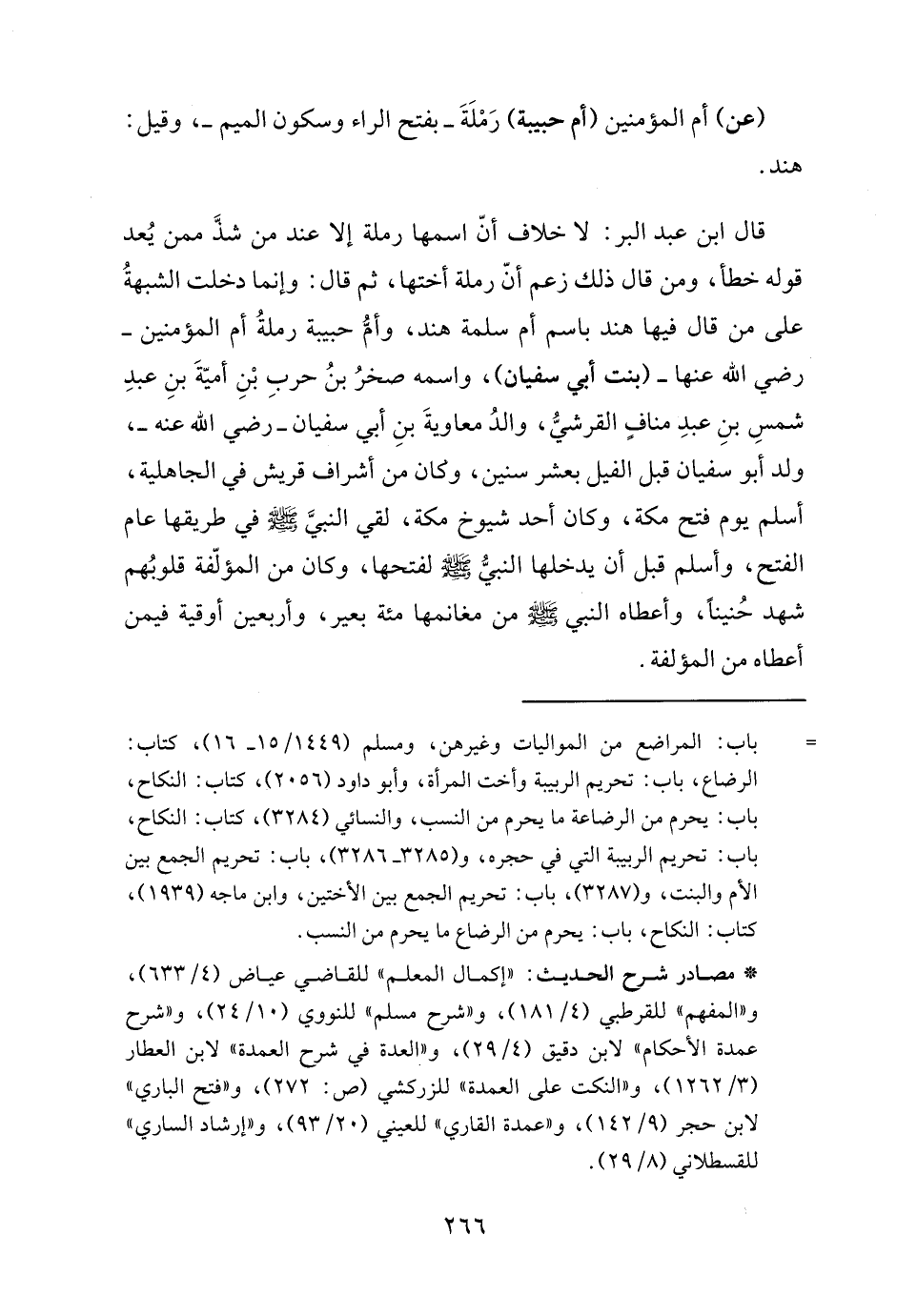 (عن) أم المؤمنين (أم حبيبة) رَمْلَةَ -بفتح الراء وسكون الميم-، وقيل: هند.