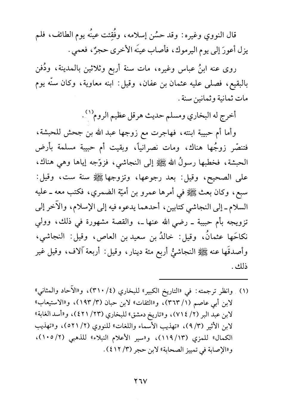 أخرج له البخاري ومسلم حديث هرقل عظيم الروم (١).