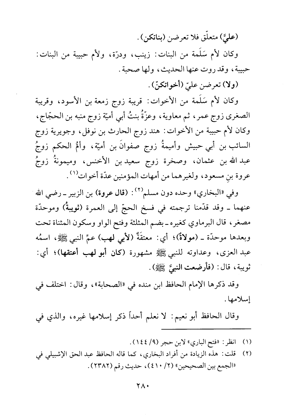 وقال الحافظ أبو نعيم: لا نعلم أحدًا ذكر إسلامها غيره، والذي في