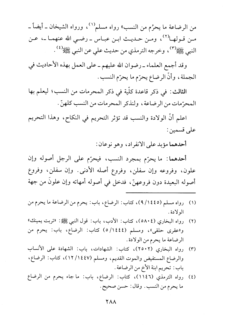 (١) رواه مسلم (١٤٤٥/ ٩)، كتاب: الرضاع، باب: يحرم من الرضاعة ما يحرم من الولادة.