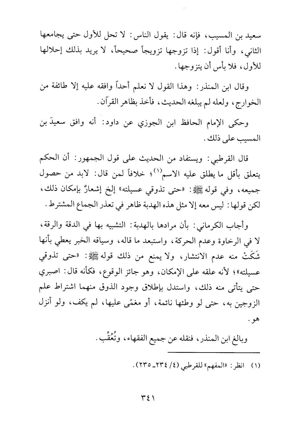 وحكى الإمام الحافظ ابن الجوزي عن داود: أنه وافق سعيدَ بن المسيب على ذلك.