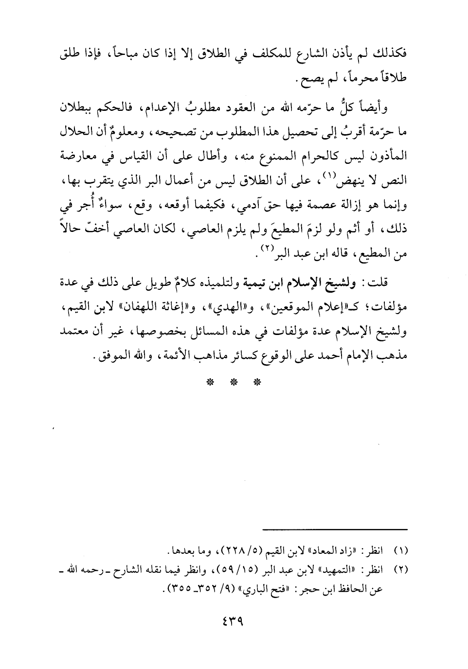 قلت: ولشيخ الإسلام ابن تيمية ولتلميذه كلامٌ طويل على ذلك في عدة مؤلفات، كـ"إعلام الموقعين"، و"الهدي"، و"إغاثة اللهفان" لابن القيم، ولشيخ الإسلام عدة مؤلفات في هذه المسائل بخصوصها، غير أن معتمد مذهب الإمام أحمد على الوقوع كسائر مذاهب الأئمة، والله الموفق.