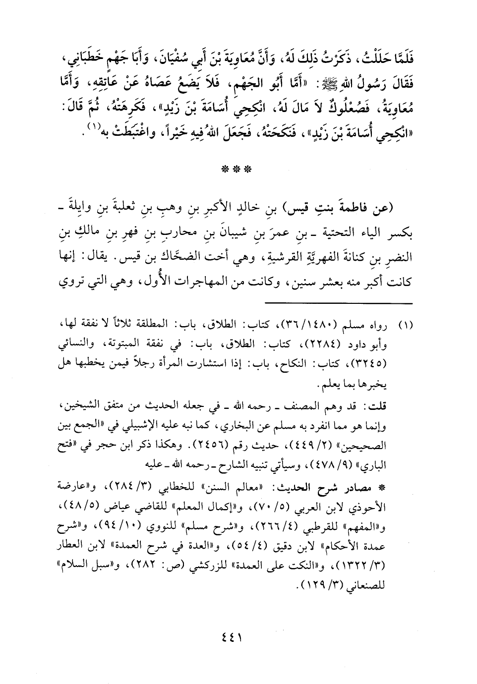 "معالم السنن" للخطابي (٣/ ٢٨٤)، و"عارضة الأحوذي لابن العربي (٥/ ٧٠)، و"إكمال المعلم" للقاضي عياض (٥/ ٤٨)، و"المفهم" للقرطبي (٤/ ٢٦٦)، و"شرح مسلم" للنووي (١٠/ ٩٤)، و"شرح عمدة الأحكام" لابن دقيق (٤/ ٥٤)، و"العدة في شرح العمدة" لابن العطار (٣/ ١٣٢٢)، و"النكت على العمدة" للزركشي (ص: ٢٨٢)، و"سبل السلام" للصنعاني (٣/ ١٢٩).