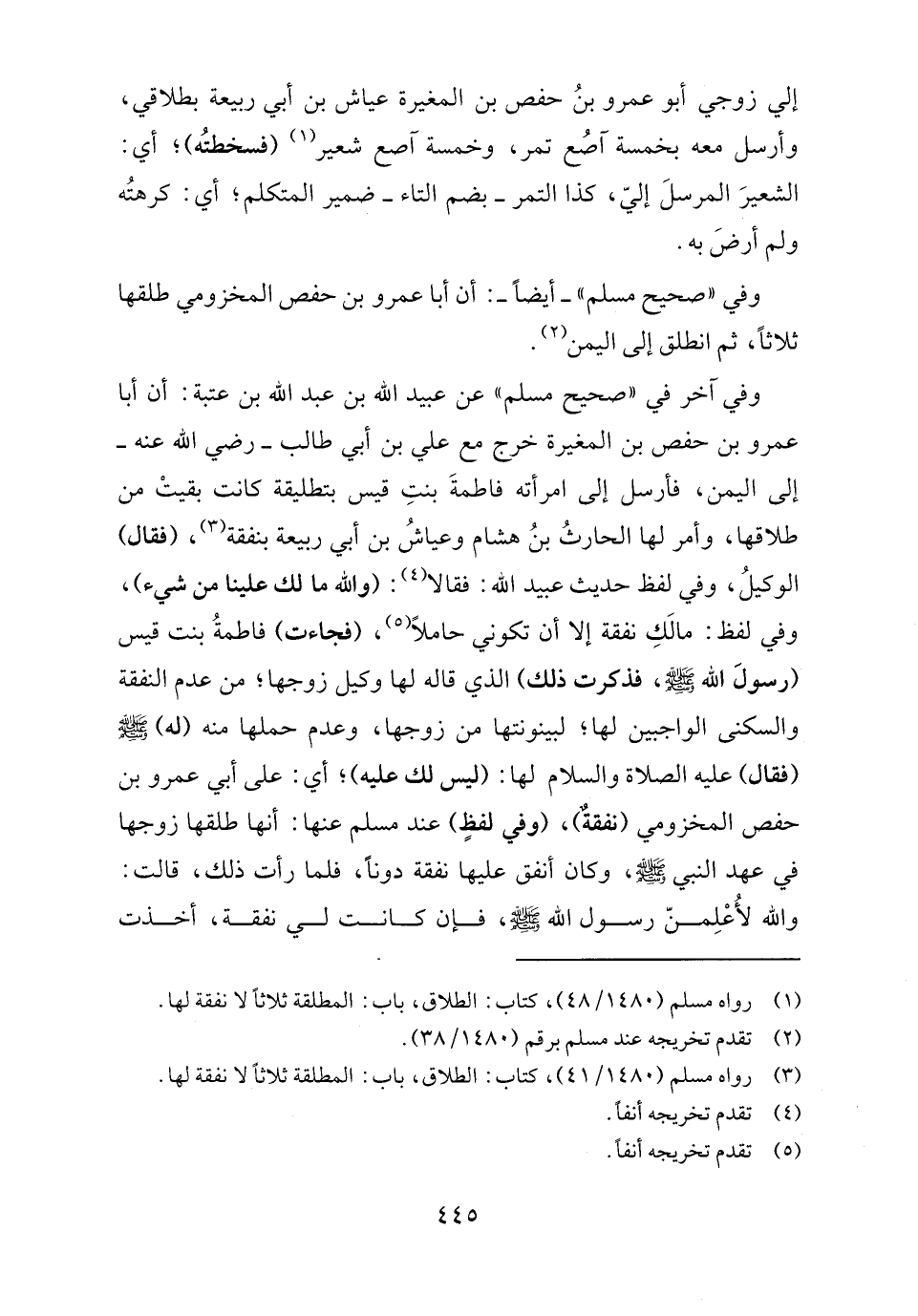 (٣) رواه مسلم (١٤٨٠/ ٤١)، كتاب: الطلاق، باب: المطلقة ثلاثًا لا نفقة لها.