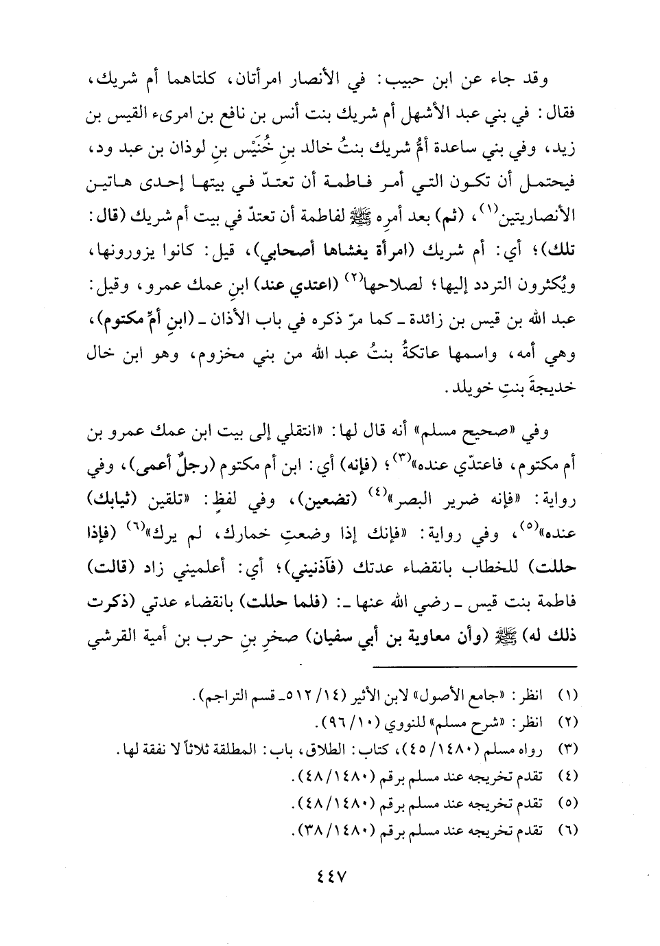 وقد جاء عن ابن حبيب: في الأنصار امرأتان، كلتاهما أم شريك، فقال: في بني عبد الأشهل أم شريك بنت أنس بن نافع بن امرىء القيس بن زيد، وفي بني ساعدة أمُّ شريك بنتُ خالد بنِ خُنَيْس بنِ لوذان بن عبد ود، فيحتمل أن تكون التي أمر فاطمة أن تعتدّ في بيتها إحدى هاتين الأنصاريتين (١)، (ثم) بعد أمرِه - صلى الله عليه وسلم - لفاطمة أن تعتدّ في بيت أم شريك (قال: