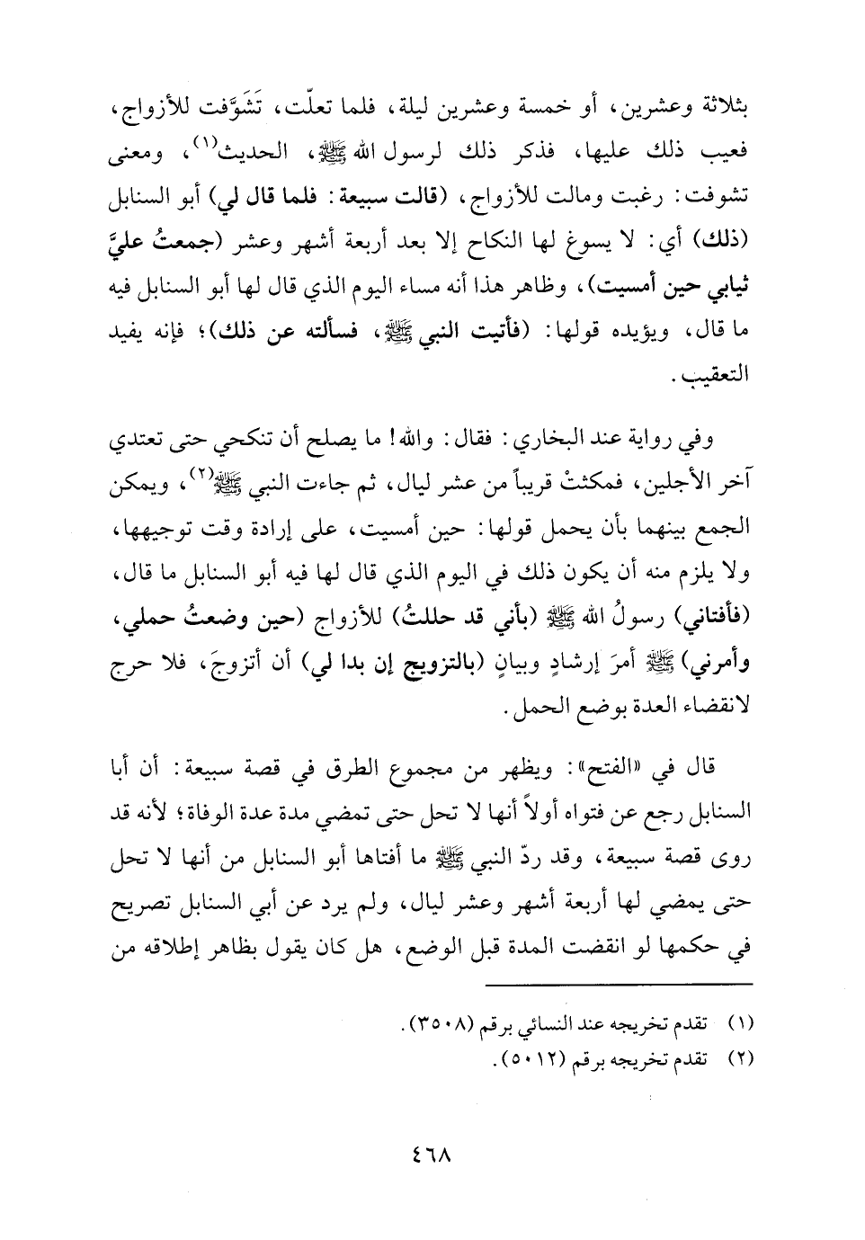 قال في "الفتح": ويظهر من مجموع الطرق في قصة سبيعة: أن أبا السنابل رجع عن فتواه أولًا أما لا تحل حتى تمضي مدة عدة الوفاة؛ لأنه قد روى قصة سبيعة، وقد ردّ النبي - صلى الله عليه وسلم - ما أفتاها أبو السنابل من أنها لا تحل حتى يمضي لها أربعة أشهر وعشر ليال، ولم يرد عن أبي السنابل تصريح في حكمها لو انقضت المدة قبل الوضع، هل كان يقول بظاهر إطلاقه من