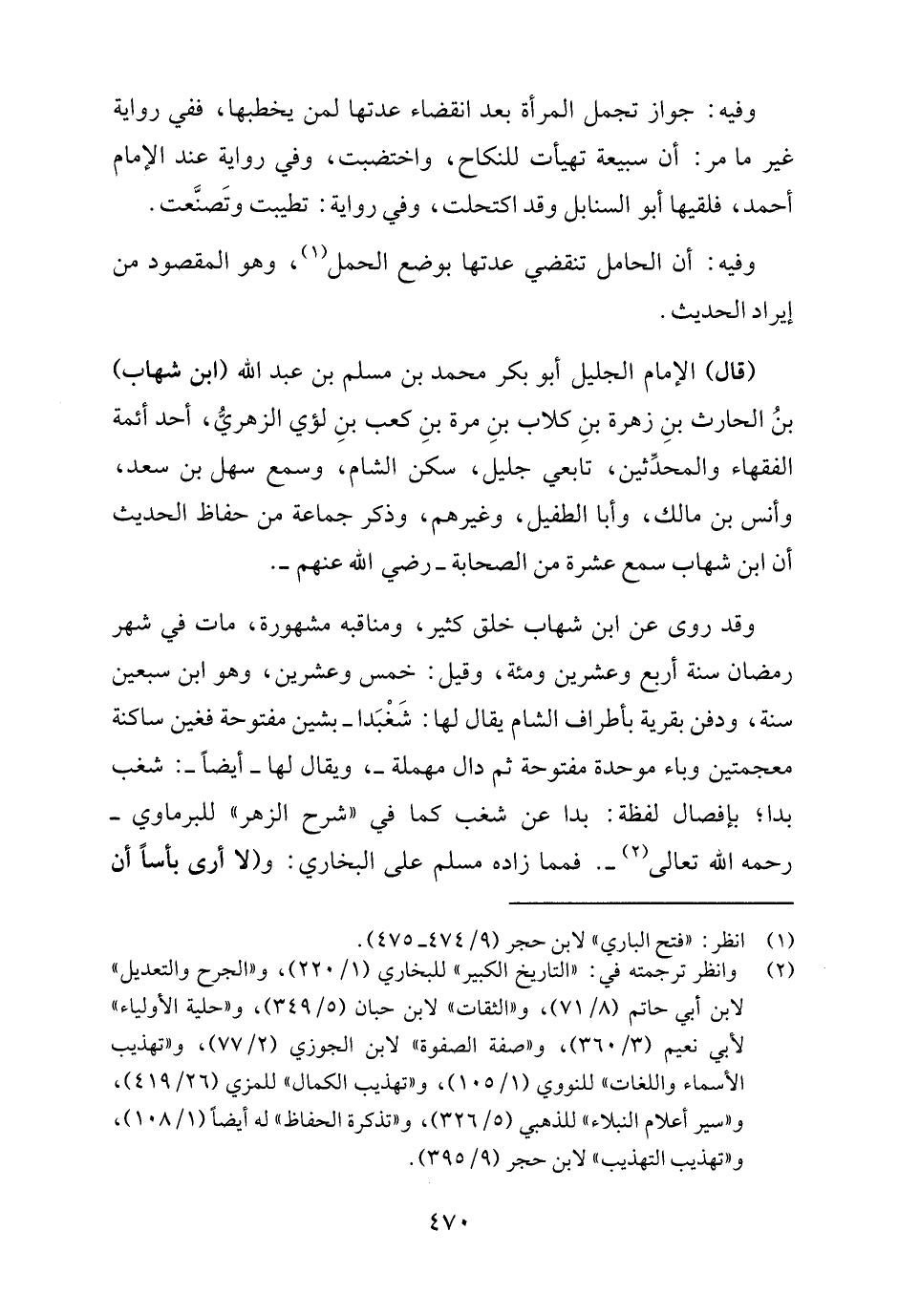 وفيه: أن الحامل تنقضي عدتها بوضع الحمل (١)، وهو المقصود من إيراد الحديث.