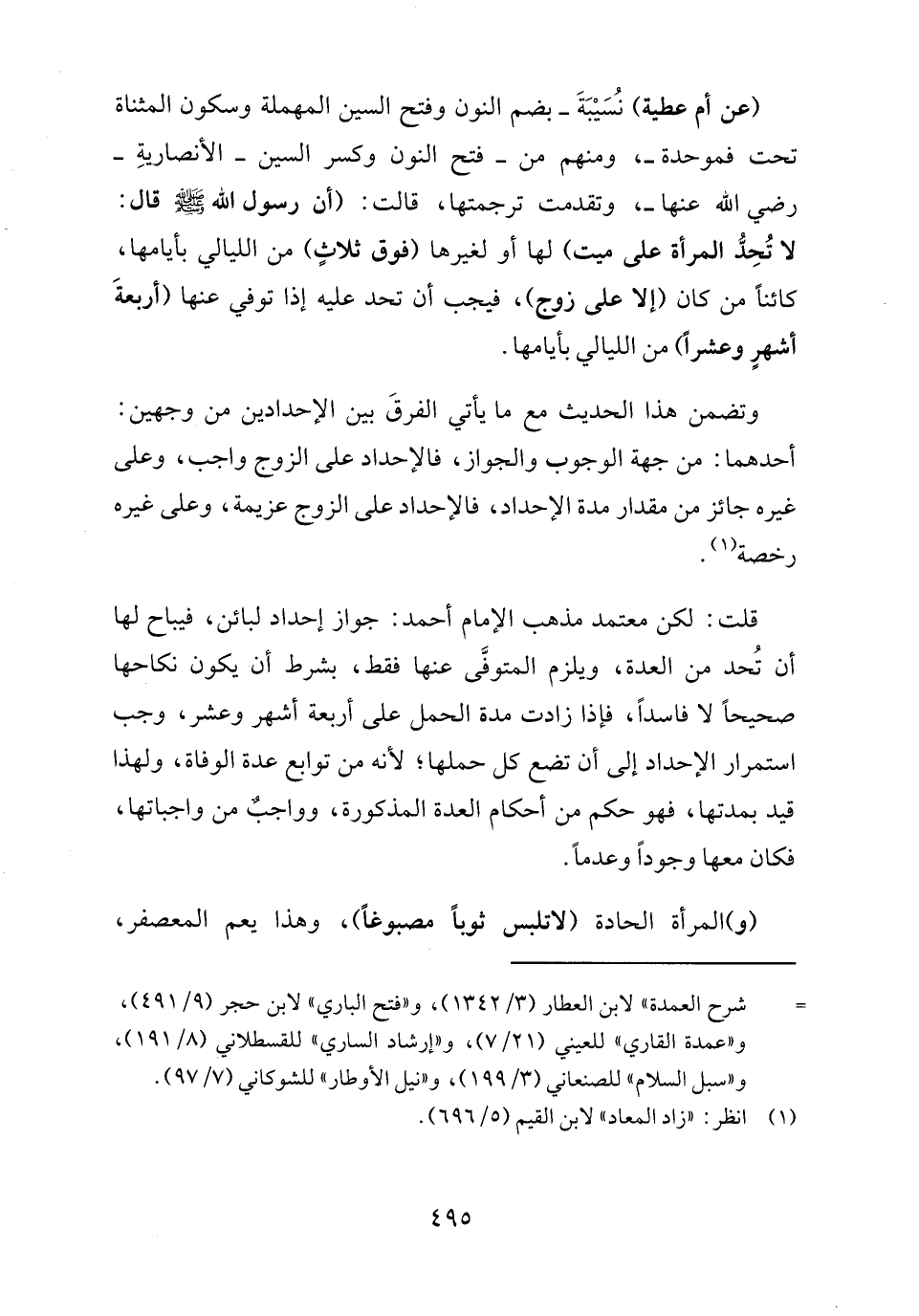 وتضمن هذا الحديث مع ما يأتي الفرقَ بين الإحدادين من وجهين: