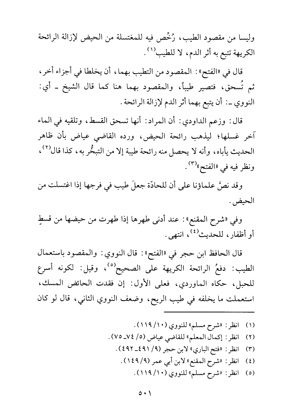 قال: الحافظ ابن حجر في "الفتح": قال: النووي: والمقصود باستعمال الطيب: دفعُ الرائحة الكريهة على الصحيح (٥)، وقيل: لكونه أسرع للحبل، حكاه الماوردي، فعلى الأول: إن فقدت الحائض المسك، استعملت ما يخلفه في طيب الريح، وضعف النووي الثاني، قال لو كان