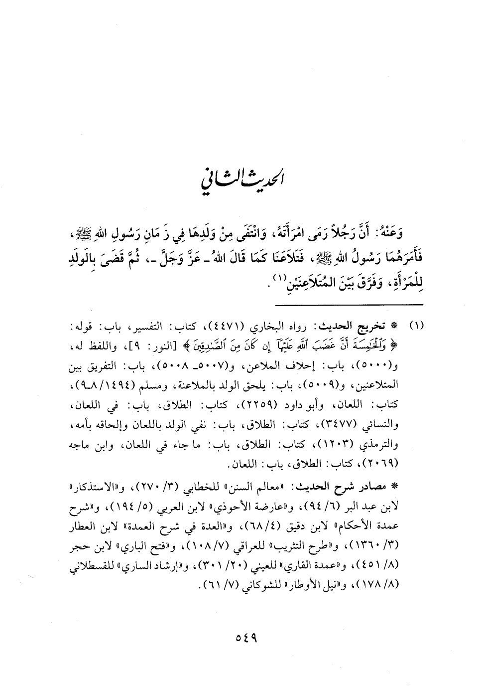 رواه البخاري (٤٤٧١)، كتاب: التفسير، باب: قوله: {وَالْخَامِسَةَ أَنَّ غَضَبَ اللَّهِ عَلَيْهَا إِنْ كَانَ مِنَ الصَّادِقِينَ} [النور: ٩]، واللفظ له، و (٥٠٠٠)، باب: إحلاف الملاعن، و (٥٠٠٧ - ٥٠٠٨)، باب: التفريق بين المتلاعنين، و (٥٠٠٩)، باب: يلحق الولد بالملاعنة، ومسلم (١٤٩٤/ ٨ - ٩)، كتاب: اللعان، وأبو داود (٢٢٥٩)، كتاب: الطلاق، باب: في اللعان، والنسائي (٣٤٧٧)، كتاب: الطلاق، باب: نفي الولد باللعان وإلحاقه بأمه، والترمذي (١٢٠٣)، كتاب: الطلاق، باب: ما جاء في اللعان، وابن ماجه (٢٠٦٩)، كتاب: الطلاق، باب: اللعان.