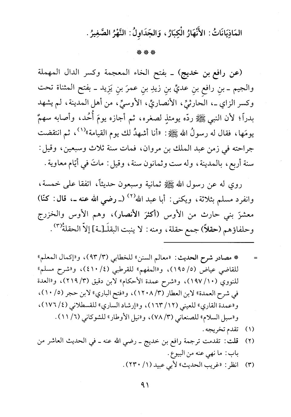 (٢) قلت: تقدمت ترجمة رافع بن خديج - رضي الله عنه - في الحديث العاشر من باب: ما نهي عنه من البيوع.