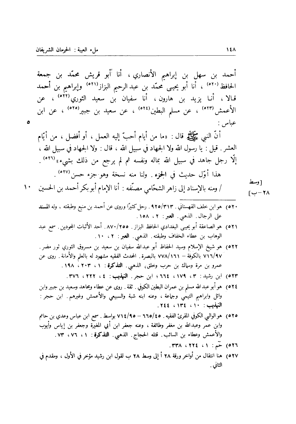 وَمِنْهُ بِالإِسْنَادِ إِلَى زَاهِرٍ الشَّحَّامِيِّ مُصَنِّفُهُ، أنا الإِمَامُ أَبُو بَكْرٍ أَحْمَدُ بْنُ الْحُسَيْنِ