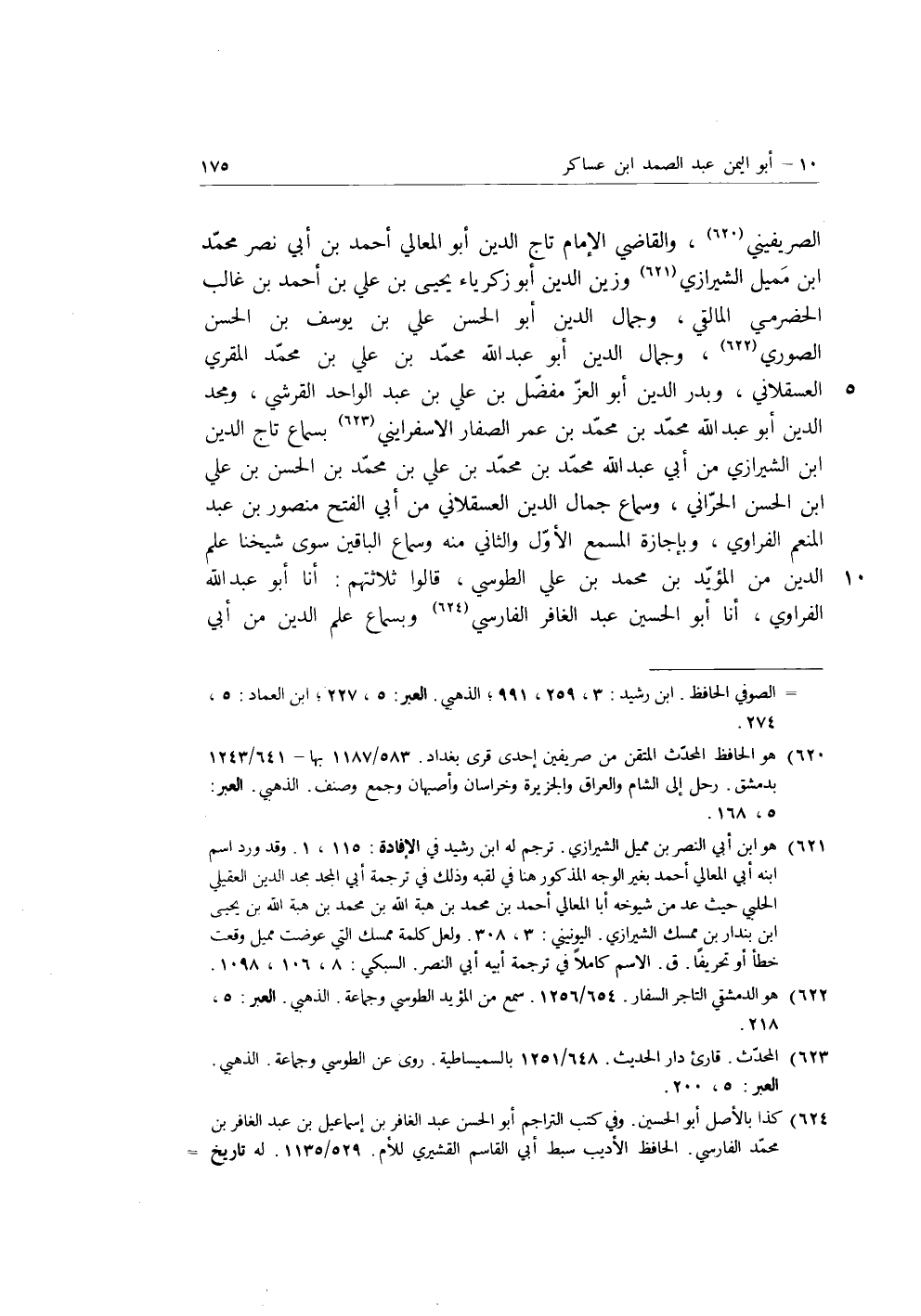 الصريفيني، والقاضي الإمام تاج الدين أبو المعالي أحمد بن أبي نصر محمد بن مميل الشيرازي، وزين الدين أبو زكرياء يحيى بن عَلِيِّ بْنِ أَحْمَدَ بْنِ غالب الحضرمي المالقي، وجمال الدين أَبُو الْحَسَنِ علي بن يوسف بن الْحَسَنِ الصوري، وجمال الدين أبو عبد الله محمد بن عَلِيِّ بْنِ محمد المقري العسقلاني، وبدر الدين أبو العز مفضل بن عَلِيِّ بْنِ عبد الواحد القرشي، ومجد الدين أبو عبد الله محمد بن مُحَمَّدِ بْنِ عمر الصفار الاسفرايني بسماع تاج الدين بن الشيرازي، من أبي عبد الله محمد بن مُحَمَّدِ بن عَلِيِّ بْنِ مُحَمَّدِ بْنِ الحسن بن عَلِيِّ بْنِ الْحَسَنِ الحراني، وسماع جمال الدين العسقلاني، من أبي الفتح منصور بن عبد المنعم الْفُرَاوِيّ، وبإجازة المسمع الأول والثاني منه وسماع الباقين سوى شيخنا علم الدين من المؤيد بن مُحَمَّدِ بْنِ علي الطوسي، قالوا ثلاثتهم: