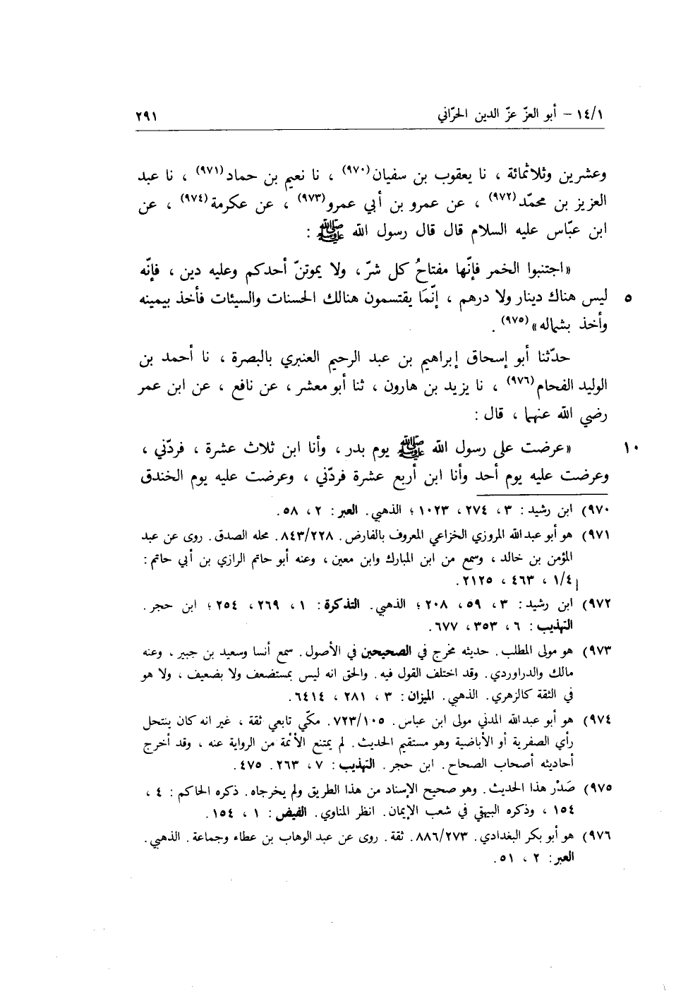 حَدَّثَنَا أَبُو إِسْحَاقَ إِبْرَاهِيمُ بْنُ عَبْدِ الرَّحِيمِ الْعَنْبَرِيُّ بِالْبَصْرَةِ، نا أَحْمَدُ بْنُ الْوَلِيدِ الْفَحَّامِ، نا يَزِيدُ بْنُ هَارُونَ، ثنا أَبُو مَعْشَرٍ، عَنْ نَافِعٍ، عَنِ ابْنِ عُمَرَ رَضِيَ اللَّهُ عَنْهُمَا، قَالَ: «