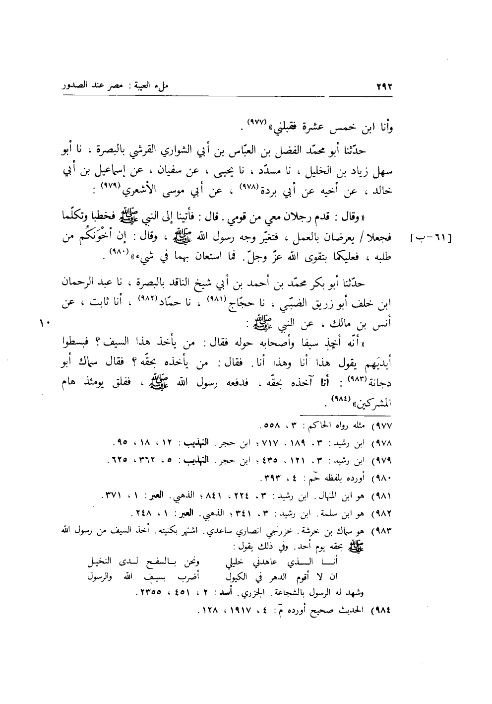 حَدَّثَنَا أَبُو مُحَمَّدٍ الْفَضْلُ بْنُ الْعَبَّاسِ بْنِ أَبِي الشَّوَارِي الْقُرَشِيُّ بِالْبَصْرَةِ، نا أَبُو سَهْلٍ زِيَادُ بْنُ الْخَلِيلِ نا مُسَدَّدٌ، نا يَحْيَى، عَنْ سُفْيَانَ، عَنْ إِسْمَاعِيلَ بْنِ أَبِي خَالِدٍ، عَنْ أَخِيهِ، عَنْ أَبِي بُرْدَةَ، عَنْ أَبِي مُوسَى الأَشْعَرِيِّ.
