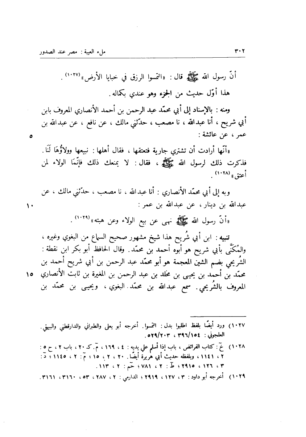 وَمِنْهُ: بِالإِسْنَادِ إِلَى أَبِي مُحَمَّدٍ عَبْدُ الرَّحْمَنِ بْنُ أَحْمَدَ الأَنْصَارِيُّ الْمَعْرُوفُ بِابْنِ أَبِي شُرَيْحٍ، أنا عَبْدُ اللَّهِ، نا مُصْعَبٌ، حَدَّثَنِي مَالِكٌ، عَنْ نَافِعٍ، عَنْ عَبْدِ اللَّهِ بْنِ عُمَرَ، عَنْ عَائِشَةَ: أَنَّهَا أَرَادَتْ أَنْ تَشْتَرِيَ جَارِيَةً فَتَعْتِقَهَا، فَقَالَ أَهْلُهَا: نَبِيعُهَا وَوَلاؤُهَا لَنَا.