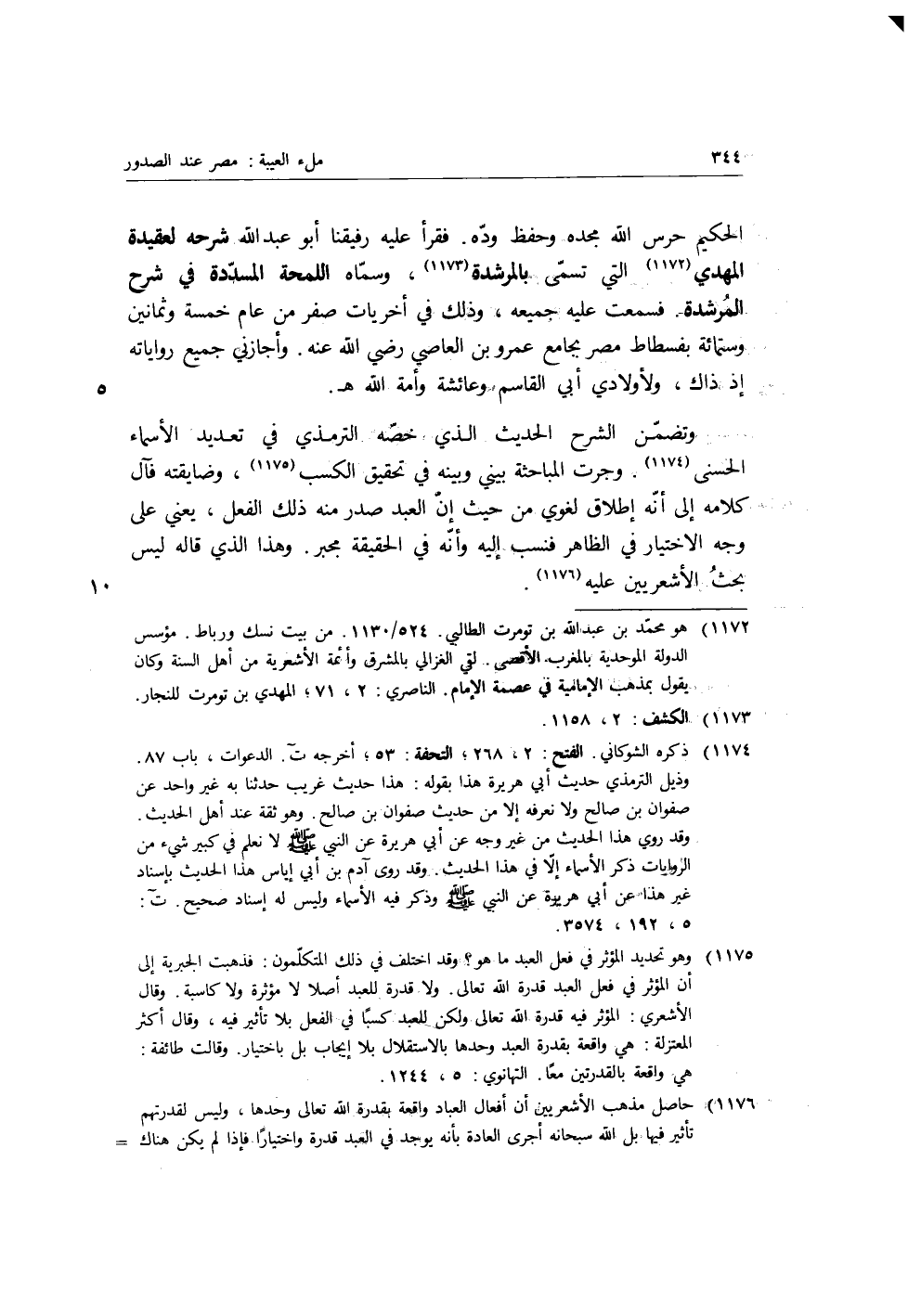 تضمن الشرح الحديث الذي خصه الترمذي في تعديد الأسماء الحسنى وجرت المباحثة بيني وبينه في تحقيق الكسب وضايقته فآل كلامه إلى أنه إطلاق لغوي من حيث إن العبد صدر منه ذلك الفعل، يعني على وجه الاختيار في الظاهر فنسب إليه وأنه في الحقيقة مجبر، وهذا الذي قاله ليس بحث الأشعريين عليه.