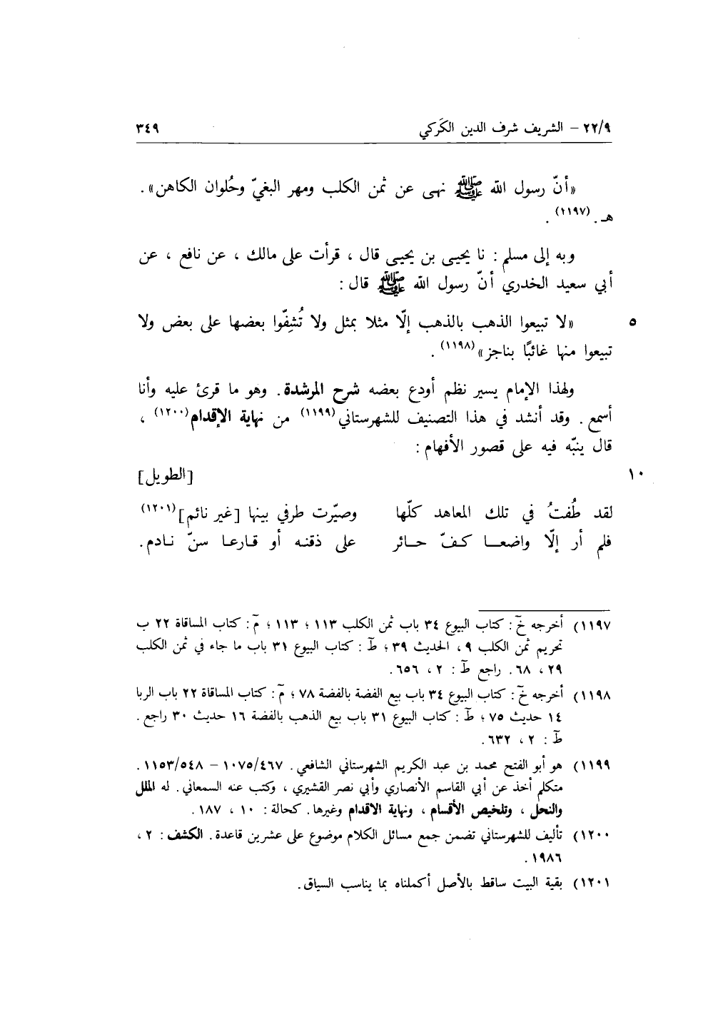 ولهذا الإمام يسير نظم أودع بعضه شرح المرشدة، وهو ما قرئ عليه وَأَنَا أَسْمَعُ، وقد أنشد في هذا التصنيف للشهرستاني، من نهاية الإقدام، قَالَ ينبه فيه على قصور الإفهام.