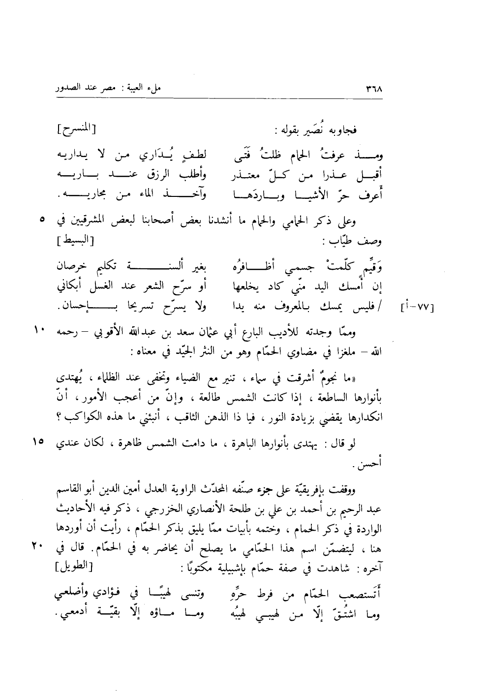 وعلى ذكر الحمامي والحمام، ما أنشدنا بعض أصحابنا لبعض المشرقيين في وصف طياب: