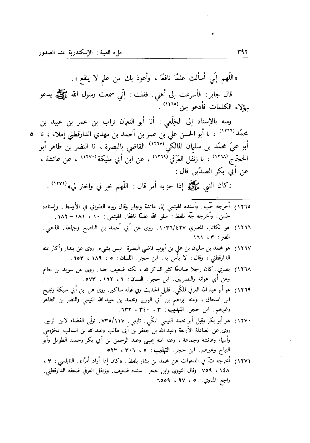 «اللَّهُمَّ إِنِّي أَسْأَلُكَ عِلْمًا نَافِعًا، وَأَعُوذُ بِكَ مِنْ عِلْمٍ لا يَنْفَعُ» .